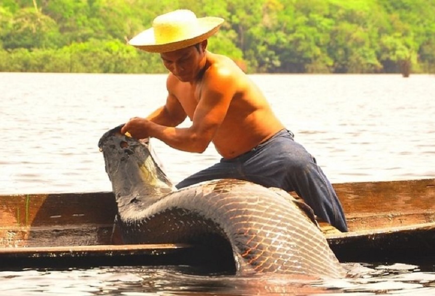 O pirarucu (Arapaima gigas), também conhecido como arapaima ou peixe pirosca, pode atingir até 3,5 metros de comprimento e um peso de até 250 kg. O animal é um grande predador onívoro dos rios da Bacia Amazônica, se alimentando de peixes, caramujos, crustáceos, anfíbios, cágados e cobras, entre outros, de uma enorme lista de presas. Quando jovem, o pirarucu se alimenta basicamente de plâncton, plantas e animais microscópicos que vivem livres nas águas dos rios, passando depois a comer pequenos peixes e crustáceos. O peixe pode viver até 18 anos.