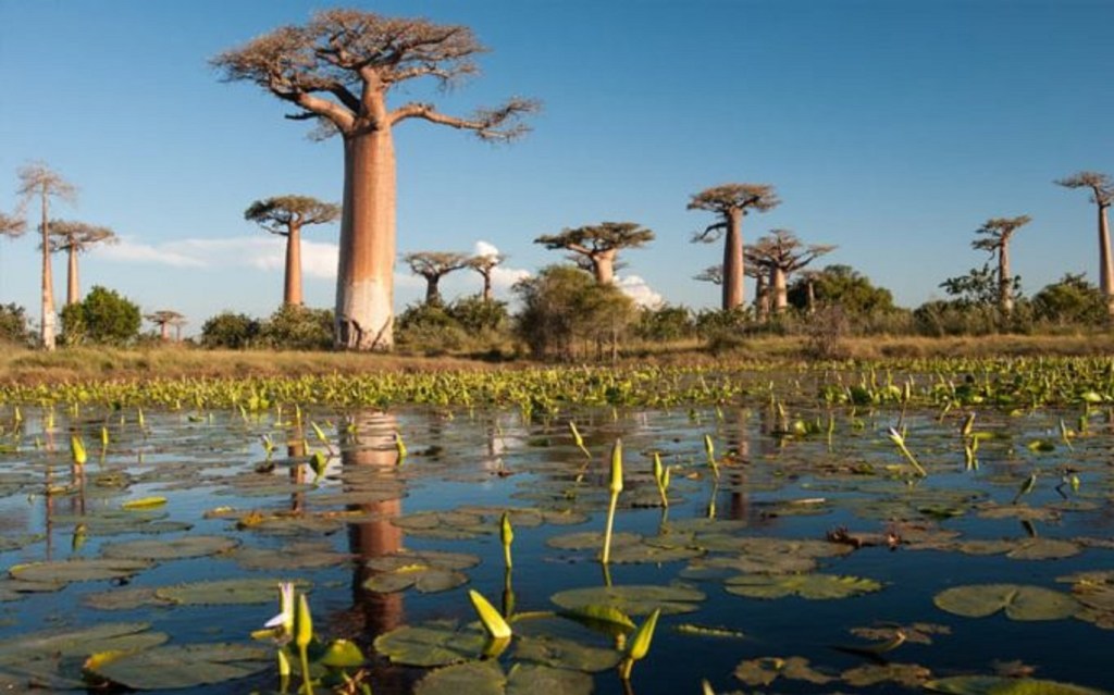 Ficando totalmente isoladas de outros territórios, a fauna e a flora de Madagascar evoluíram de forma independente, criando uma biodiversidade das mais exclusivas do mundo. Cerca de 90% de todas as plantas e animais da ilha não são encontrados em outros locais do mundo. Dois exemplos das formas animais únicas de Madagascar são os lêmures, uma classe de primatas autóctones da Ilha, e as fossas, um mamífero carnívoro que se assemelha fisicamente aos grandes felinos, mas que, na realidade, é aparentado com as fuinhas europeias. Outro exemplo são os baobás (vide foto), árvore símbolo de Madagascar com seis espécies exclusivas da ilha.