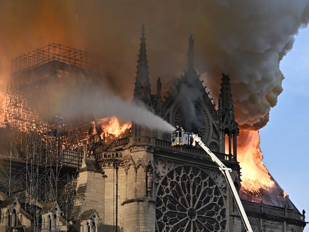 No início da noite do dia 15 de abril de 2019, a famosa Catedral de Notre-Dame, em Paris, foi tomada por um incêndio de grandes proporções. Telejornais e sites de notícias apresentaram essa tragédia ao vivo para todo o mundo. Eu lembro claramente das cenas de voluntários e bombeiros correndo desesperadamente para salvar obras de arte e outras peças religiosas, enquanto outras equipes tentavam dominar as fortes labaredas (vide foto).